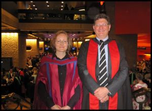 Congratulations to CMCI’s latest PhD graduate, Dr Wendy Burke. She is pictured here with her research supervisor, Dr Richard Howells, at the July graduation ceremony held at London’s Barbican Centre. Even before the official ceremony, Wendy had been appointed Senior Lecturer at York St John University. Mortar boards off all round.