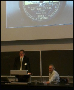 He is pictured here describing a record, released in 1912, which urged people to donate to the widows and orphans created by the disaster. As such, it was a seminal “charity record”. In the chair is Professor Nick Cull of the University of California Los Angeles, who is also President of IAMHIST.