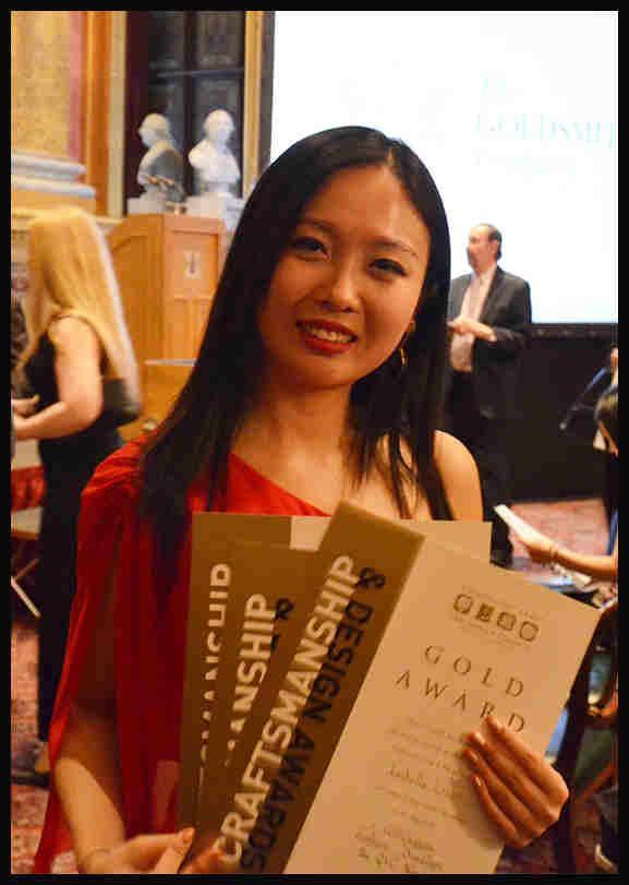 The competition- which Isabella describes as the: ‘Jewellery Oscars‘- has been held annually by the Goldsmiths’ Craft and Design Council (GC&DC) since 1908. This year saw over 800 entrants and 22 gold awards, three of which went to Liu.