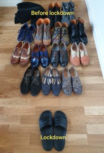It seems that a lot of people (unlike myself!) have not stopped thinking of what they wear. Quite the contrary, clothes have suddenly become more important. As one of our respondents, costume designer Clodagh Deegan put it, ‘Sometimes I will be dressed, as in wearing clothes, but mostly I am dressed’. Dressing up in lockdown makes clothes acquire new gravitas.