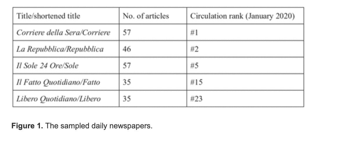 The opportunity to start this research project arose during my PhD fieldwork in Rome (in February 2020), which was disrupted by the unexpected spread of the Covid-19 disease across the country. Being in Italy in that period, however, enabled me to witness not only the development of the epidemic – and the resulting political, media, and public responses to it – but also the spread of xenophobic discourses and acts against the Chinese community in Italy. We have therefore decided to take this opportunity to start investigating the discursive strategies used by the Italian media to report the events related to the Covid-19 pandemic in China and then in Italy.