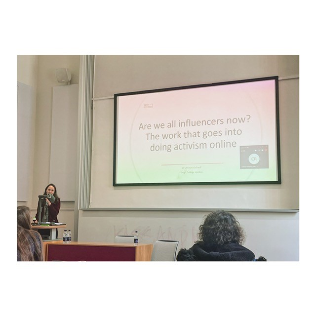 Christina’s paper entitled ‘Are we all influencers now? Exploring the work that goes into doing activism online’ drew on her current research on digital feminist activism to shed light on practices of self-branding amongst digital activists. Christina argued that widespread practices of self-branding demonstrate that neoliberal market logics work as a structuring, though not determining, force in digital feminist activism.