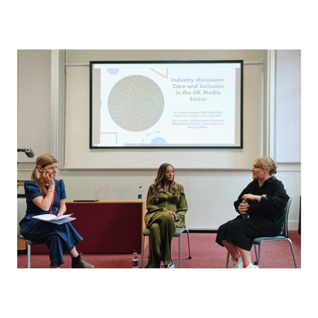 Joanna and Jessica spoke of their work around equity and inclusion within creative work. Both have an industry background and reflected on their personal journey into championing inclusivity within the sector. Raising Films was started by a group of parent and carer professionals from across the screen sector who wish to challenge the structural barriers that force carers out of the film and television sectors. As part of its missions to support, promote and campaign for parents and carers in the UK screen sector the organisation commissions research, runs training programmes and awards the Raising Films Ribbon for best practice.